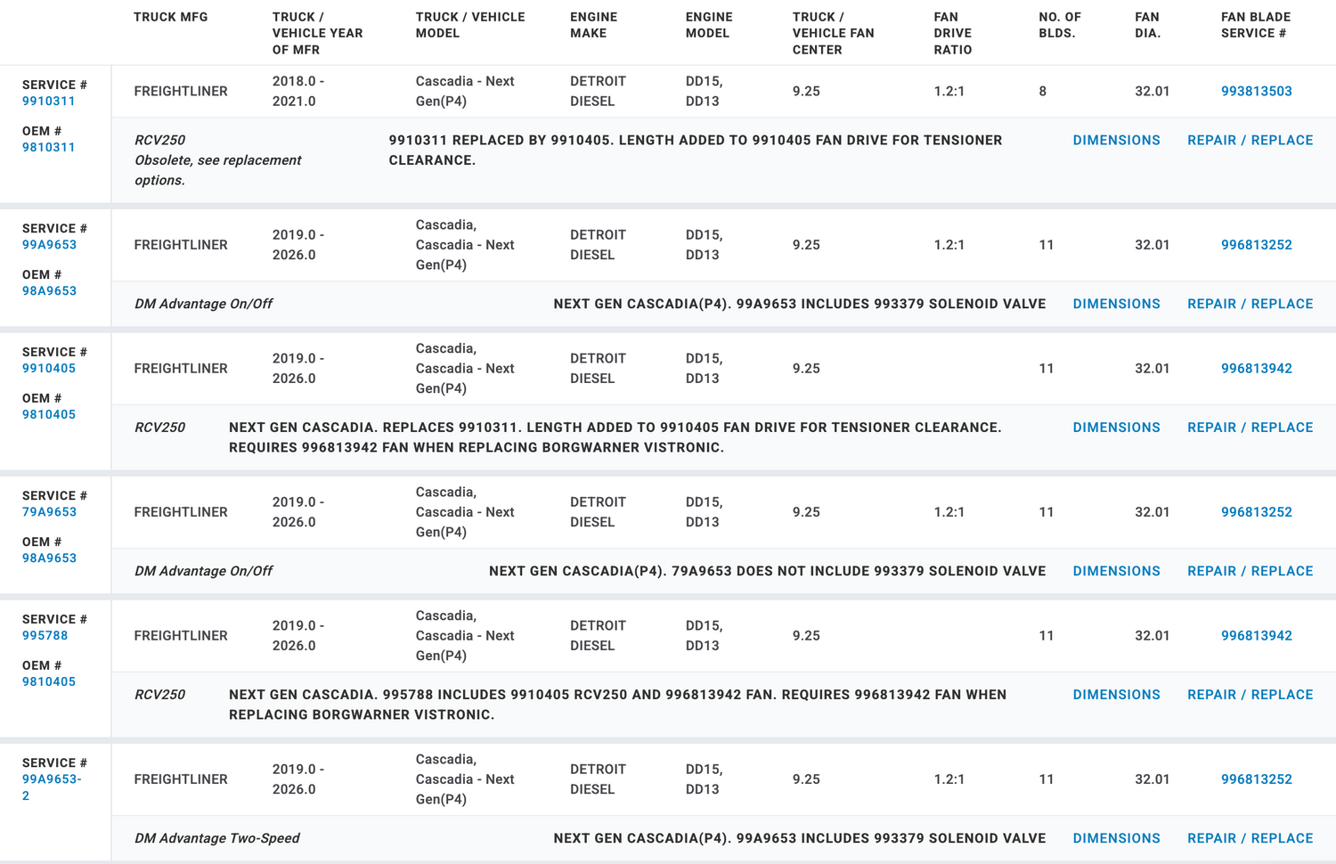 Truck Application: Freightliner (2018-2026) Cascadia, Cascadia-Next Gen(P4)
