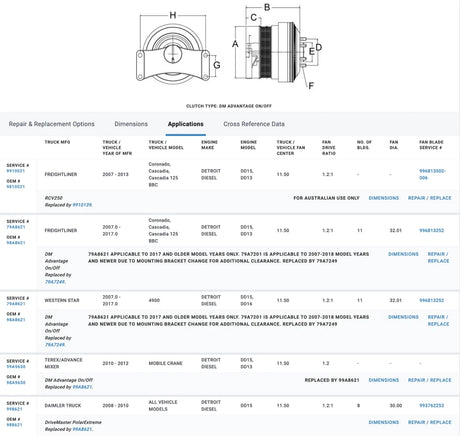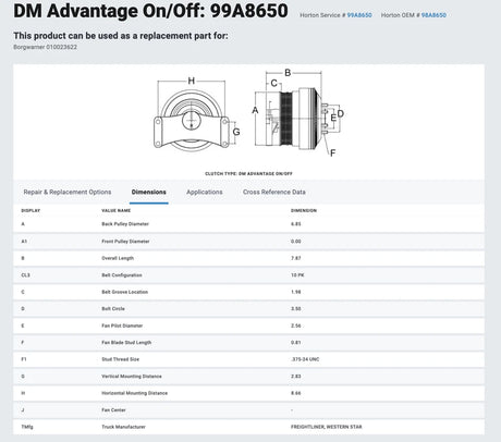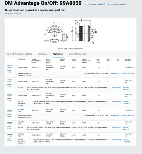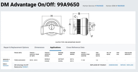 Horton Fan Clutch for Detroit DD13 DD15 Engine 98A8650 99A8650 010023622