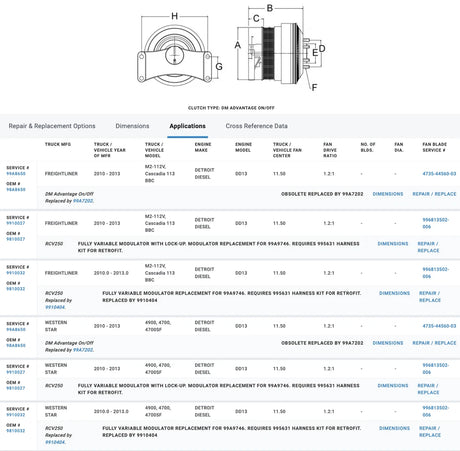 Horton Fan Clutch for Detroit DD13 Diesel Engine 98A8650 99A8650