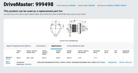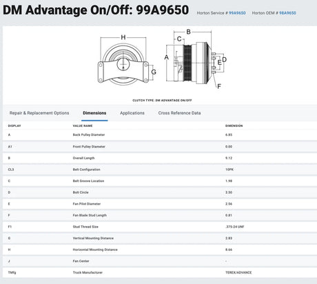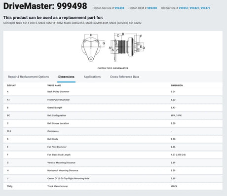 OEM Horton Fan Clutch for Mack AMI AI Engine 79A9498-2 989498 999357 999477
